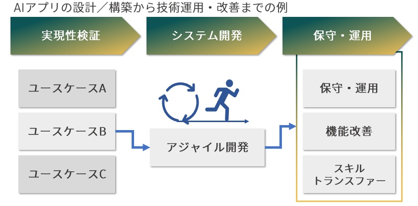 PoC止まりでは終わらせず、業務に根付くAI活用を、最短距離で実現します。