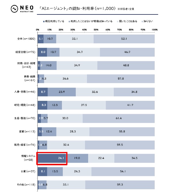 さらに、AIエージェント活用はどの程度、進んでいるのでしょうか。